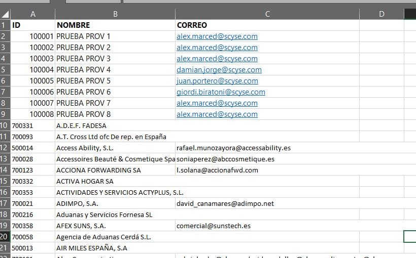 1 - Pasa por todos los proveedores de la pestaña proveedores, y envía algunos que no coinciden con los números de proveedor de la columna O. Seria posible que hiciera un BUSCARV solo con los de la "Table1" de la columna ID proveedor, ¿seria más rápido? ¿Ya qué así devolvería solo el correo de los que encuentre?