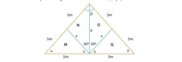 Andres, de las medidas de los lados, se ve que el triángulo es equilatero, eso significa (entre otras cosas), que los ángulos alfa, theta miden 60°, creo que beta también, ya que está marcado todo el ángulo (esto lo dejé así como comentario inicial, pero luego verás que beta no puede ser 60°).