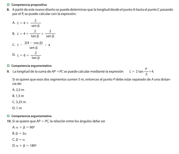 La longitud de la suma de AP 1PC se puede calcular mediante la expresión L 5 2 tan P 5 14. Si se quiere que esos dos segmentos sumen 5 m, entonces el punto P debe estar separado de A una distancia de: