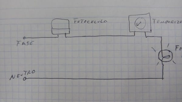 ¿Cómo se conecta un temporizador en serie con una fotocélula para encender una lámpara en determinado horario?