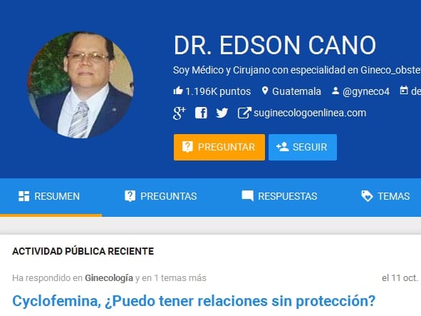 Podemos encontrar, en la zona derecha de la página, a todos los mejores expertos (los que tienen una mayor pruntuación) de la sección, por ejemplo verá a Almudena Grácia o Dante Amor, tambien a ellos puede enviarles su consulta siguiendo el proceso anterior, ya que a su vez, figuran en el subforo de ginecología..