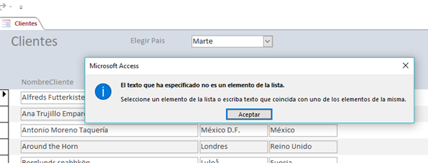 - La casilla (X) queda rellena con cualquier valor que le pongas, tanto da si es de la lista o no.