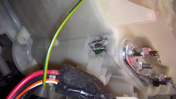 Coste de la reparación. Mientras estaba centrifugango se escucho un clack muy fuerte y a continuación ruido en cada rotación. Después de unos minutos descubrí con horror que el suelo estaba inundado. La he estado mirando y he visto algo que no comprendo. Adjunto un par de fotos.