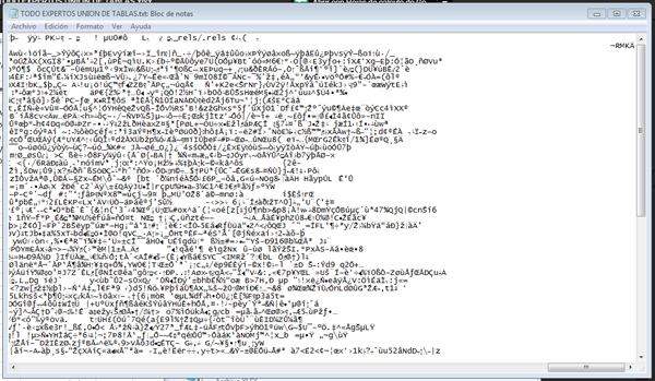 Ya lo pude abrir desde otra computadora con bloc de notas, pero me aparece así: