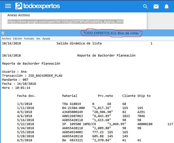 Y lo segundo: necesito que tomes un archivo de los generados en SAP y sin cambiarles "nada de nada" (mucho menos su extensión) lo subas a un servidor y publiques aquí su enlace para poder adaptar la solución que ya tengo a este último archivo que consideraré "como el que vale", ¿Ok?...
