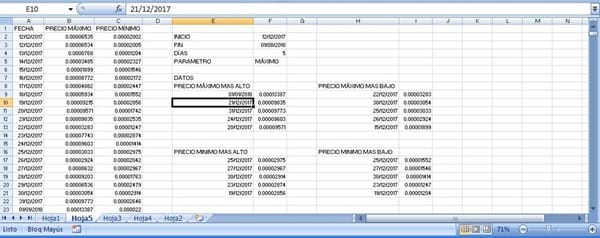 de igual forma si el valor que se escoge es "Máximo" x cantidad de resultados correspondientes a los precios máximos y sus fechas