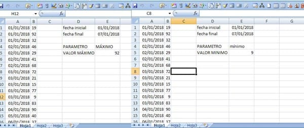 que el valor de la celda correspondiente sea "Minimo" o "Maximo", lo cual no es lo que se busca.