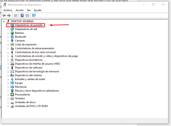 -Haz clic en la flecha al lado de Adaptadores de pantalla para expandir.