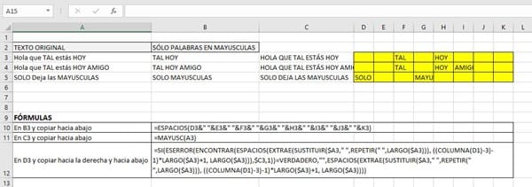 Como se debe hacer para extraer de una celda, pongamos "Hola que TAL estás HOY", exclusivamente las palabras con TODAS las letras mayúsculas. No solamente la primera letra de esa palabra sino todas.
