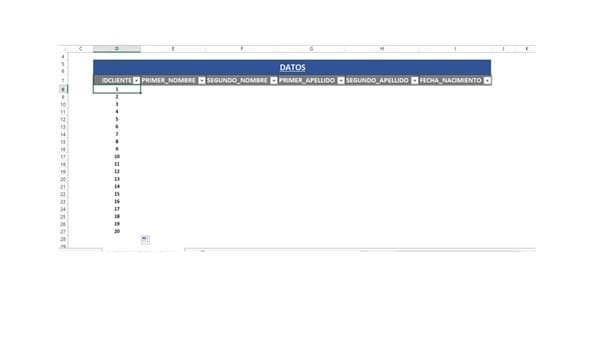 En la siguiente hoja trato de hacer una búsqueda en acess donde me aparezcan los primer y segundo nombre, primer y segundo apellido y fecha de nacimiento en esta hoja de excel que puedo hacer para