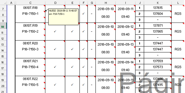 Usuario& fecha de una celda referente & hora de una celda referente & dato de la celda todo estos dentro del comentario como se observa la fecha que toma es la que esta eb la columna I y la hora igual pero deseo que avance conforme pasa cada celda y que no llene comentario a las celdas vacías