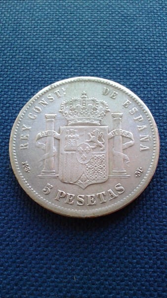 Tengo estas 5 pesetas de 1882*81 me parece bastante extraña y tengo serias dudas sobre su autenticidad. Agradecería información. No se pega al imán y el peso y dimensiones son correctas con la autentica. Muchas gracias.