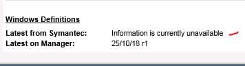 Tengo un problema con esta versión de symantec. Depues de mucho tiempo de estar funcionando esta saliendo un mensaje Latest from Symantec:Information is currently unavailable. Pero al revisar los clientes desde la consola aparecen actualizados con las ultimas definiciones. Pero este mensaje no se quita. Al ejecutar manualmente LiveUpdate no sale ningún error. Si alguien sabe como solucionar esto, agradezco.