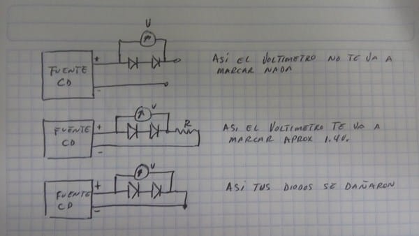 Tengo entendido que poniendo diodos en serie se puede bajar voltajes por la caída que es de unos 0,7 volt. Pero yo lo hice y lo medí con el tester y no baja absolutamente nada