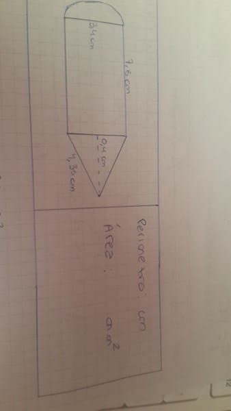 Semicircunferencia = (PI * R^2) / 2 = PI * 1.7^2 / 2 = 4.54 cm^2