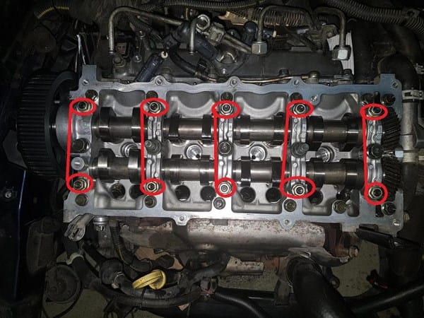He desmontado este motor y quería preguntar si alguien sabe que par de apriete hay que darle a los 10 tornillos marcados en rojo(en la foto adjunta), yo lo llamo soporte/cojinete del árbol de levas pero no se si se dice así, pues aver si alguien puede ayudarme, el coche es un opel astra g 1.7dti del año 2001 75cv código motor: y 17 dt