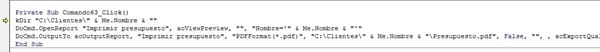 Existe la posibilidad de crear un botón que al darle click me exporte un informe en pdf del registro actual creando una carpeta (si es que no existe) con el nombre del cliente que tengo en el cuadro de texto, por ejemplo C:\Clientes\Nombre Cliente\Presupuesto.pdf?