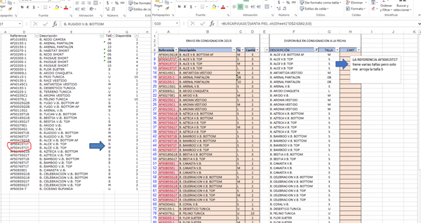Necesito cruzar dos bases de datos pero la referencia tiene varias tallas y a la hora de hacer el buscarv la referencia me arroja una sola talla necesito como saber la fórmula para que me arroje cuantas tallas tiene una referencia