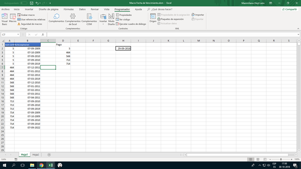 Lo que hace es poner una fórmula en la columna D para obtener la fecha máxima y que sea mayor a la fecha de la celda H2.