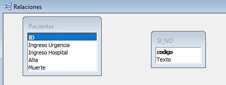 En las relaciones, ¿no puedo poner una única tabla de Si No y relacionarla con las otras 4 variables de la tabla pacientes? ¿Tengo qué relacionar con 4 tablas distintas de SINO? O como estoy haciendo está bien, que es no relacionar, ¿no poner la tabla SINO en las relaciones?