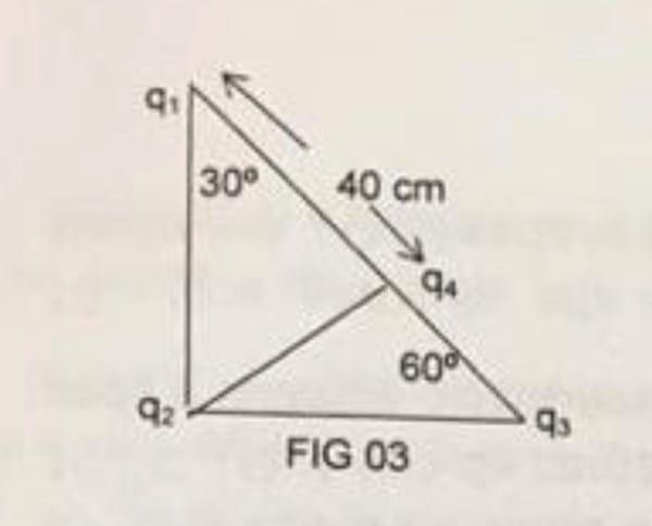 Distancia q1-q2 = 40/cos 30 = 46.20 cm.
