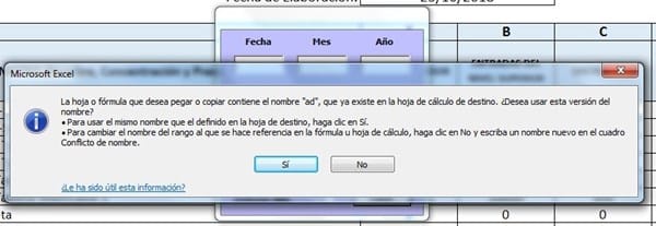 Pero al copiar la hoja sale esto varias veces y tengo que darle que si para que copie la hoja