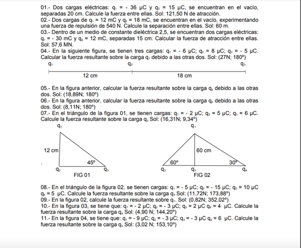 Son problemas simples. Lo único que necesitas es determinar exactamente las distancias entre las cargas.