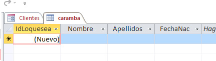 Create table TFacturas " ... Nombre de los campos. Si lo acepta.
