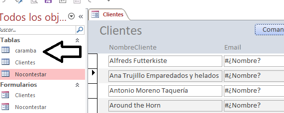 Pero si coloco el nombre de la tabla.(Ya no en una variable)