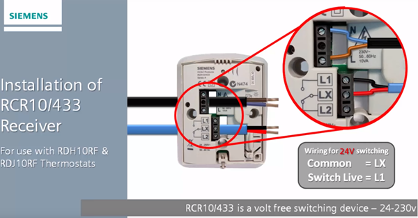Me gustaría sustituirlo por el termostato SIEMENS RDJ10RF+RCR10/433 (creo que es mi única opción por ser compatible con 24v) y según he visto es posible conectarlo de este modo:
