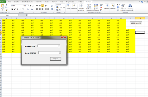 Tengo 6 hojas de un libro de excel y quiero compararlas de 2 en 2 para eso necesito un formulario
