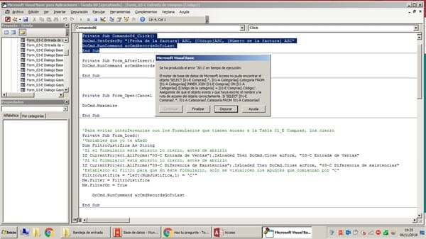 Private Sub Comando86_Click() DoCmd.SetOrderBy "[Fecha de la factura] ASC, [Código]ASC, [Número de la factura] ASC" DoCmd.RunCommand acCmdRecordsGoToLast End Sub