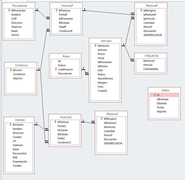 Aclaro que en la foto no salieron las tablas Entrada y Salidas que las agregue después para darle movimiento a la plata y a los gastos diarios.