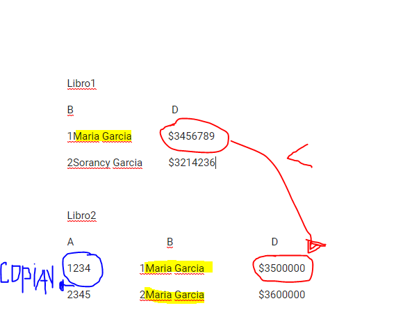 Claro está que deben coicidir los nombres ósea si me busca maria en el libro 1 y lo encuentra en el libro 2 qué hay si me haga el resto.