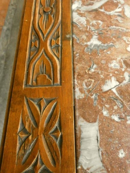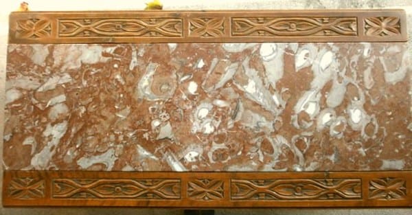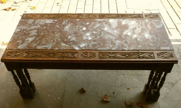 MESA de Salón, para sofá clásico. En madera tallada y mármol.
