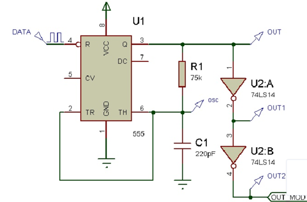 Se debe de generar una transmisión constante de 8bits. Para La portadora ocupo un 555, la Frecuencia de portadora: 10MHrz ya lo tengo resuelto. Sin embargo otras especificaciones que me pide como Frecuencia de datos: 9Kbis/s como mínimo. Amplitud de transmisión: 800mV como mínimo ¿De qué forma las puedo modificar en el circuito?