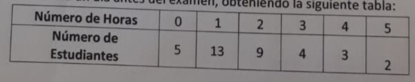 Se realiza un estudio a un grupo de estudiantes para conocer el tiempo que un alumno estudia un día antes del examen, obteniendo la siguiente tabla (imagen).