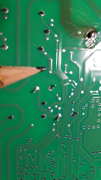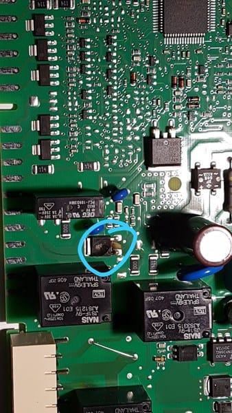 Después de comprobar la resistencia, termostato, sonda NTC... Acabe viendo la placa de alimentación y control de la resistencia, reparé unas soldaduras del relé que estaban ya sueltas pero además, hay un transistor quemado.