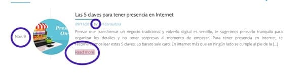 Necesito traducir 3 palabras del HOME de una plantilla. ¿Saben desde dónde encuentro estos 3 términos que señalo en la imagen? En el caso de la fecha, necesito invertirla a "9 de nov". El resto, a español ("por" y "leer más").