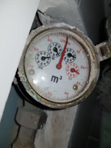 **Por lo general estos contadores tienen una sucesión de agujas que alrededor de la numeración están marcados como: 1; 10; 100; 1000; 10000; etc, a más de estas esferas hay otras, que suelen estar en color rojo, son decimales 0,1; 0,01; 0,001, etc. y también suelen tener una aguja grande roja central que marca los litros. Ud. solamente tiene que leer los números negros primeros ya que estos marcan los metros cúbicos que pasan por el contador; las otras esferas como puede suponer son fracciones de m3.
