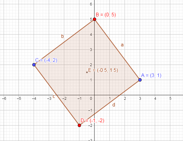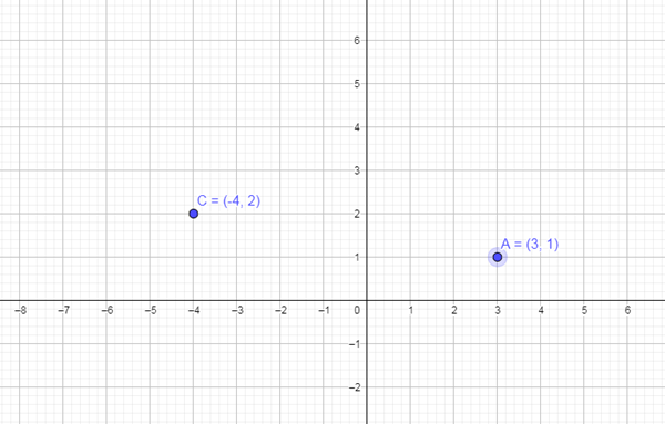 EJERCICIO 23 Dos de los vértices opuestos de un cuadrado son los puntos: A(3;1) y C(-4;2). Hallar los otros dos vértices del cuadrado.