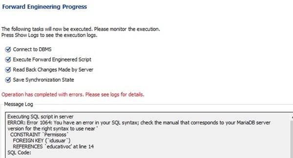 Estoy aprendiendo a trabajar con workbench exportando una base de datos a xampp pero me encuentro con el siguiente inconveniente que es error de sintaxis 1064 como podría corregir el siguiente error y recomendaciones para no repetirlo.