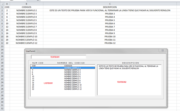 Tengo 2 macros la cual una te busca y la otra al seleccionar un items te muestra la descripción en la siguiente fila, pero no se como hacer que funcionen juntas je je