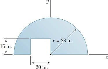 7.-Encuentre las coordenadas del centro de gravedad de la placa metálica de espesor uniforme mostrada en la de placa homogénea mostrada en el figura.
