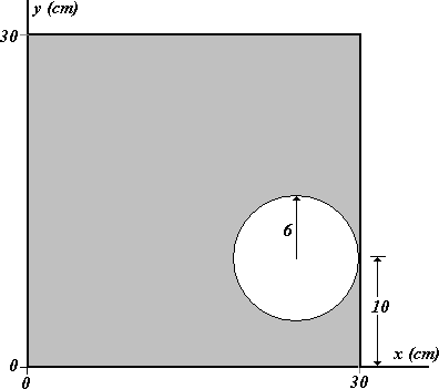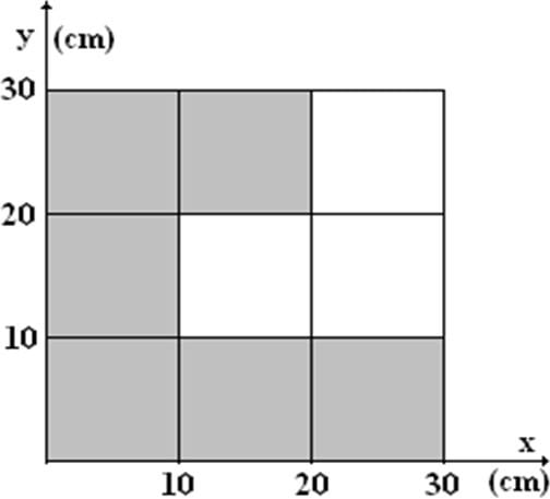 5.-Una pieza uniforma de lámina de acero tiene la forma mostrada en la figura. Calcule las coordenadas x e y del centro de masa de la pieza.