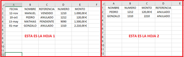 Quiero hacer lo siguiente tengo un formato en excel que dos hojas o libros en uno de ellos ingreso los siguientes datos fecha, nombre, referencia, numero y monto lo que quiero que si coloco la palabra anulado en la columna de regencia automáticamente me traslade para la otra hoja los datos que seria nombre, numero y monto de esa fila que en la otra hoja coloque anulado, y cada vez que vaya colocando anulado, traslade la información para la otra hoja pero los datos los debe ir colocando en la siguiente fila y así sucesivamente