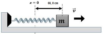 Una partícula de masa 245 g está unida a un resorte de amplitud 82,0 cm (Máxima elongación).