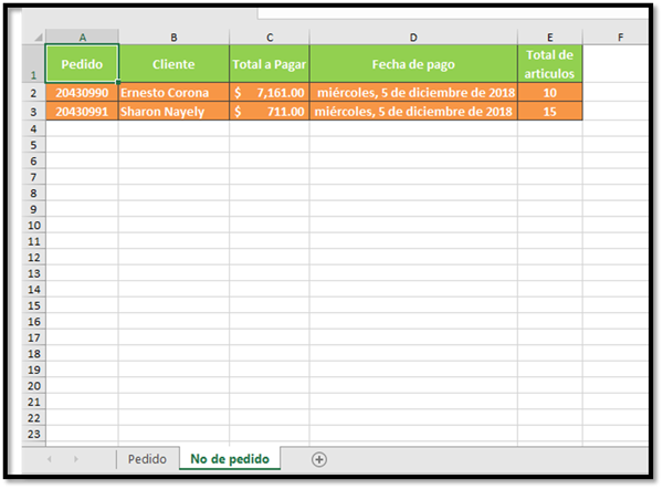 Por ejemplo: en la imagen la celda A2 haría referencia a un hipervinculo con el mismo nombre al archivo de excel 20430990 que se encuentra dentro de una carpeta especifica y así con cada una de las celdas en la columna de pedido.