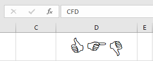 • La letra "F" devuelve el símbolo ☞ Si el valor mostrado en la celda F9 es menor a 80.