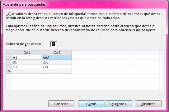 Cómo visualizar todas las columnas seleccionadas a través del asistente para búsquedas